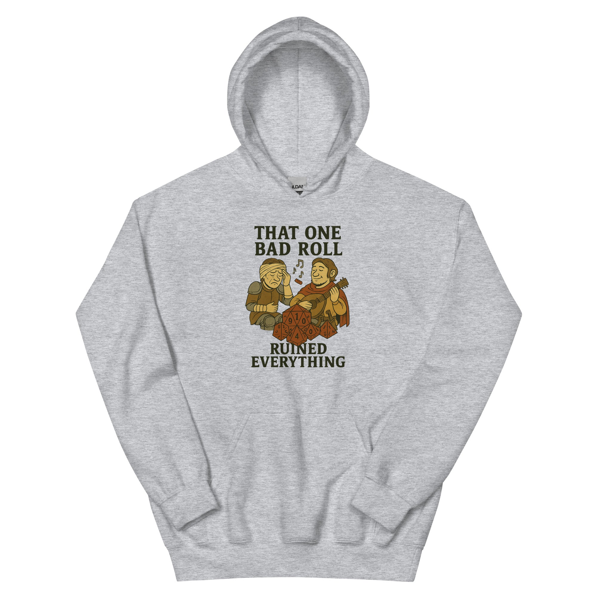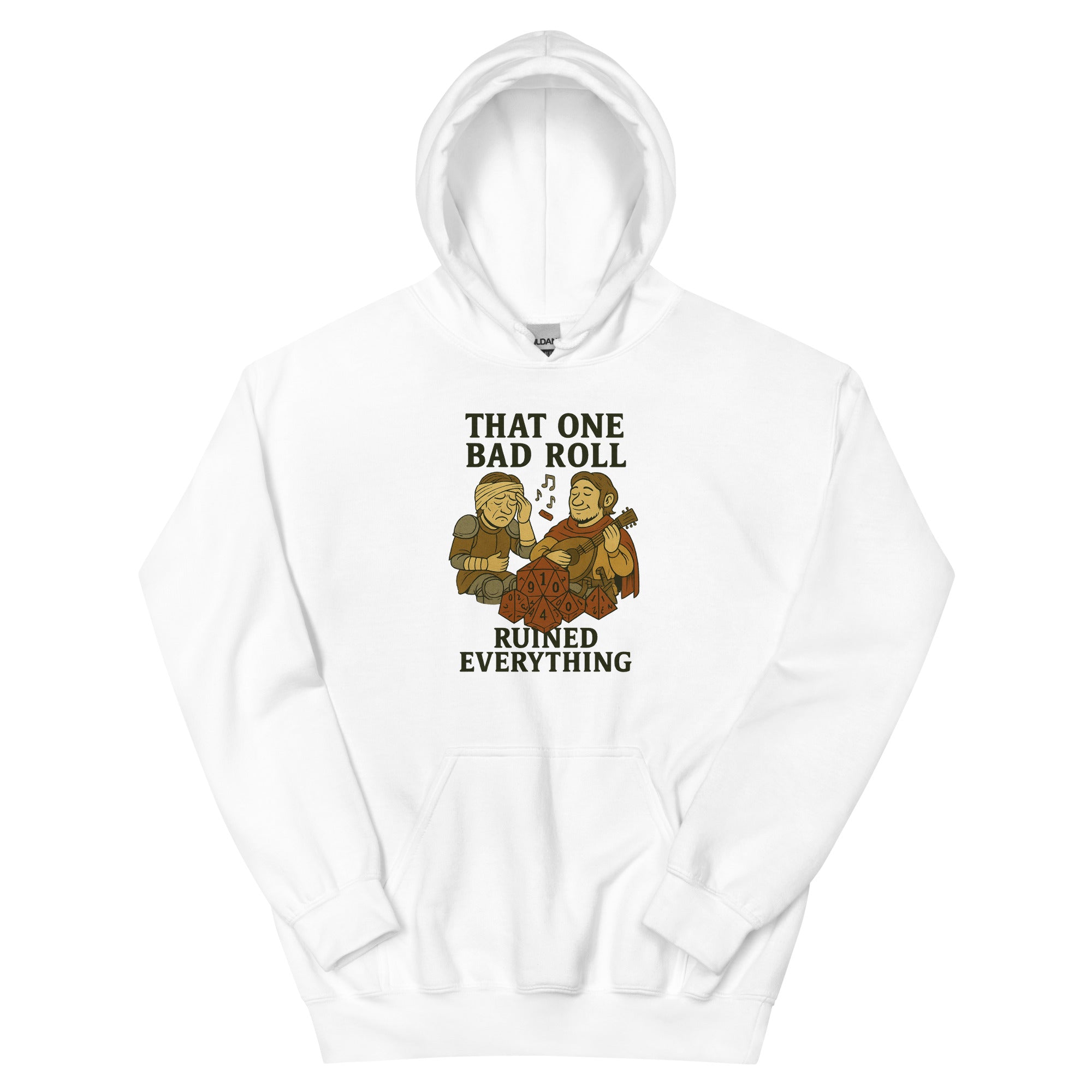 This funny D&D T-shirt features a cool graphic of a D20 die and the hilarious text "That One Bad Roll Ruined Everything." Perfect for any Dungeon Master or tabletop gamer who knows the pain of a critical fumble. A hilarious gift for any D&D player who loves a good laugh about their misfortune. Great for wearing to your next campaign session, a gaming convention, or just hanging out with fellow adventurers.